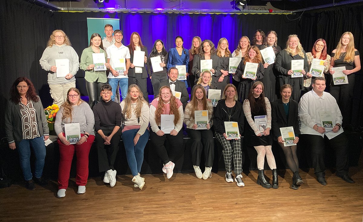 Gleich vier Absolventinnen und Absolventen wurden mit der Endnote 1,1 Jahrgangsbeste im Fach Heilerziehungspflege: Karina Schmitt, Maria Lomakin, Simon Spickert und Jana Usenbenz. Im Fach Heilerziehungsassistenz belegte Monta Gauere diesen Spitzenplatz, ebenfalls mit 1,1. Nach der Überreichung der Urkunden beschloss ein Buffet den Abend, den der Sänger und Songwriter Patrick Noe musikalisch begleitete.